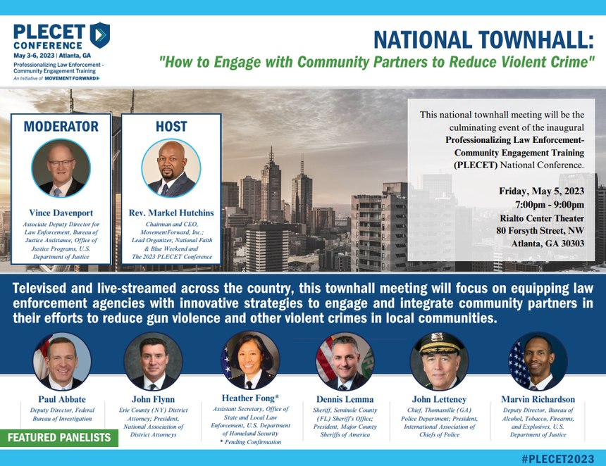 The event is organized by MovementForward, Inc., an Atlanta-based national human and civil rights organization led by the Reverend Markel Hutchins, that also organizes the annual National Faith & Blue Weekend.