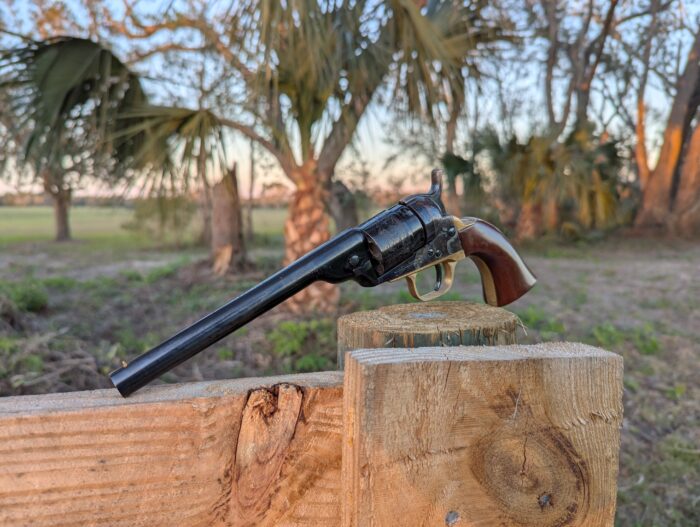 [[{“value”:”Gun shows aren’t always bad. Most of the time, the modern gun show is terrible. It’s a waste of time, and it’s occupied by overpriced guns trying to draw in impulse purchasers. Not to mention piles of Chinesium, crappy knives and the sound of a stun gun every 45 seconds. Beef jerky tends to be the redeeming factor of the modern gun show. However, there are gems amongst the rabble, and one gem I found was the Cimarron 1862 Pocket Navy Conversion.