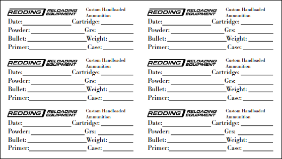 Tags: Ammo Box Labels, Load Data Sheets, Printable Labels, Redding Reloading