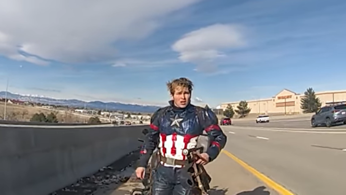 Deputy Zach Zepeski encountered Captain America – or as he’s known locally, the Colorado Captain – after the hero’s bike broke down along the highway shoulder, according to the sheriff’s office.