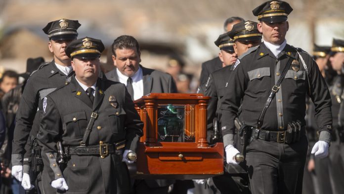 The fatal shooting of Officer Justin Hare happened before dawn on March 15, 2024, along Interstate 40 near the community of Tucumcari. The killing set off a search for Smith, who was wounded and captured two days later in Albuquerque after authorities got a tip from a gas station clerk.