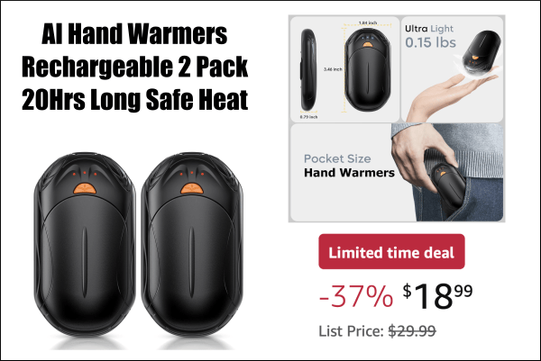 11. Amazon — A.I. Hand Warmers Rechargeable 2-Pack, $18.99