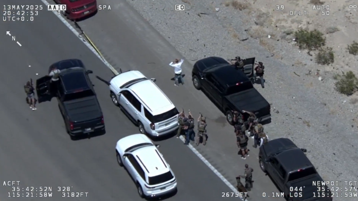 Las Vegas Metro Police and the FBI’s Criminal Apprehension Team arrested the 27-year-old suspect on May 13 along I-15 near Jean, Nevada, KSNV reports. On May 20, LVMPD released bodycam and aerial footage of the arrest, which showed officers deploying a Grappler device to disable the suspect’s vehicle.
