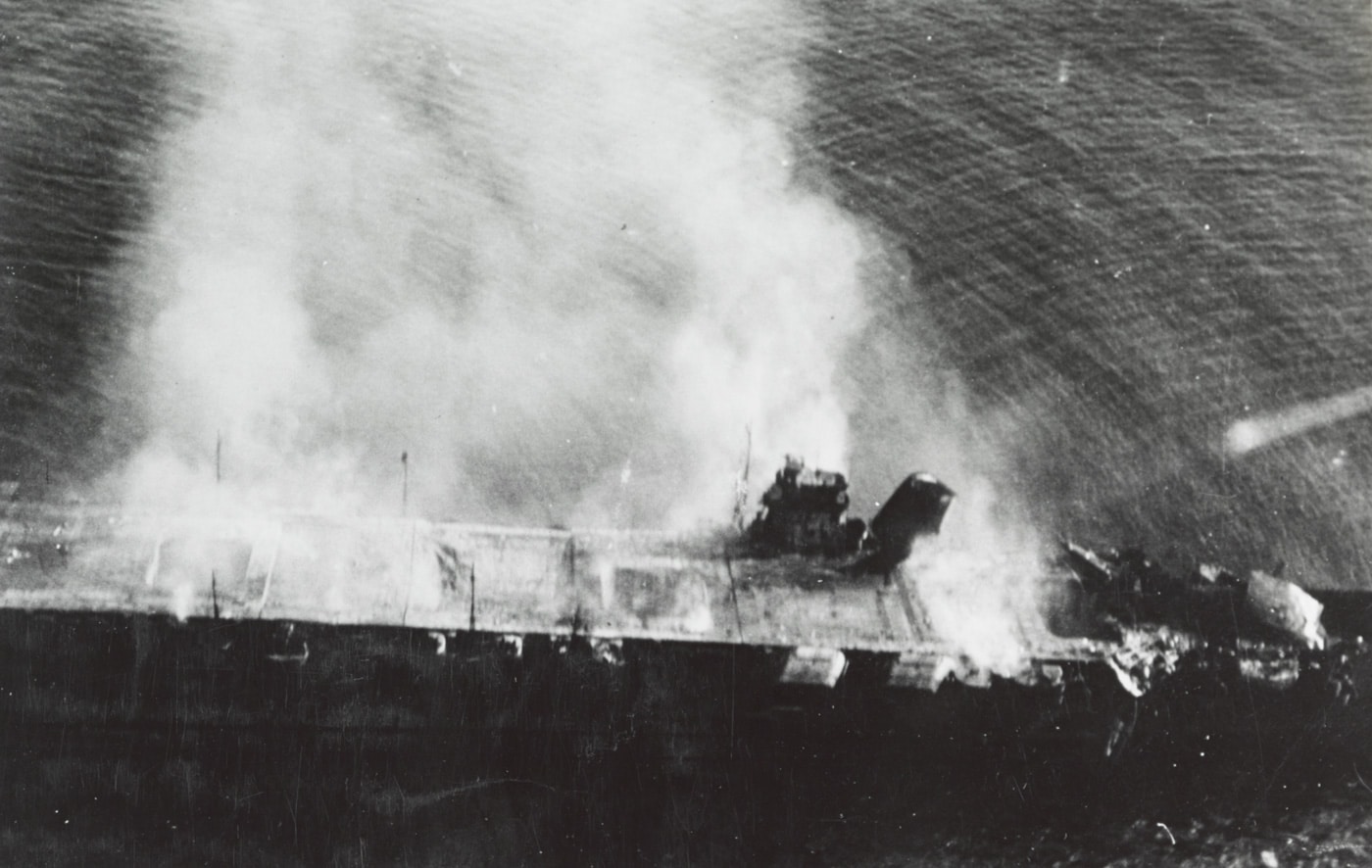As previously noted, Hōshō was among the IJN flotilla that carried out the December 7, 1941, attack on Pearl Harbor. While its aircraft didn’t take part in the actual raid on the U.S. Navy’s warships, the fighter wing provided cover for the carrier force. The Japanese warship played a similar role during the Battle of Midway in June 1942. It was wisely kept from frontline action as its aircraft consisted of eight bi-plane Yokosuka B4Y “Jean” torpedo bombers that were already considered antiquated. For the remainder of 1942 and 1943, the vessel served primarily as a training carrier.