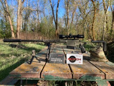 Before I fired a single shot, I took it off and replaced it with my Odin Works Enduro suppressor. I left all five baffles on the suppressor for this rifle, as it’s not meant to be a lightweight gun to start with. The Enduro did a great job of taming the percussion and recoil out of the rifle. With it attached, it was enjoyable to shoot. I am very sensitive to percussion, and this is a must for me.