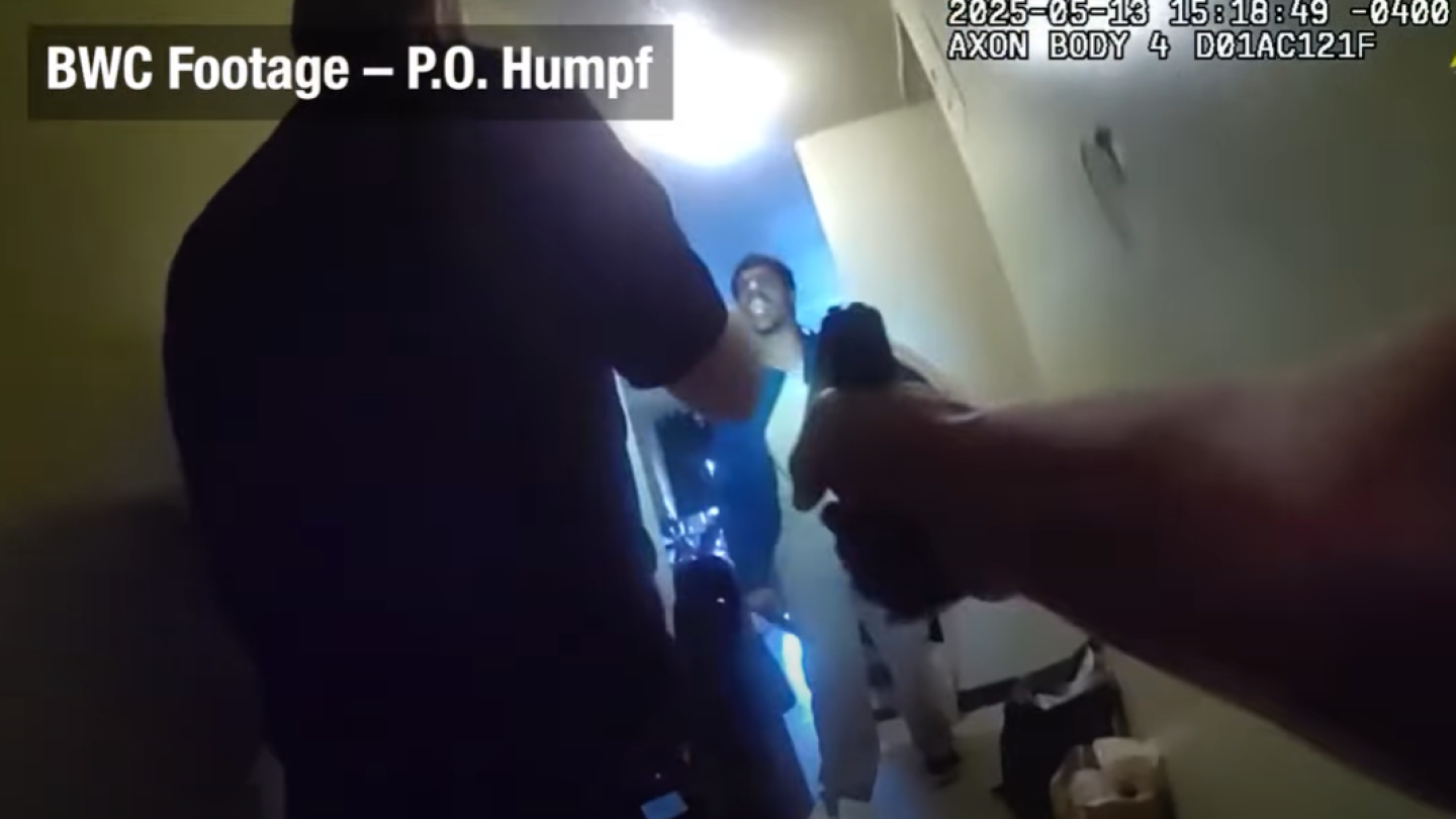 The May 13 incident began when officers responded to a 911 call reporting a person threatening to attack another individual. After interviewing the caller and identifying the suspect, the officers entered the suspect’s apartment.