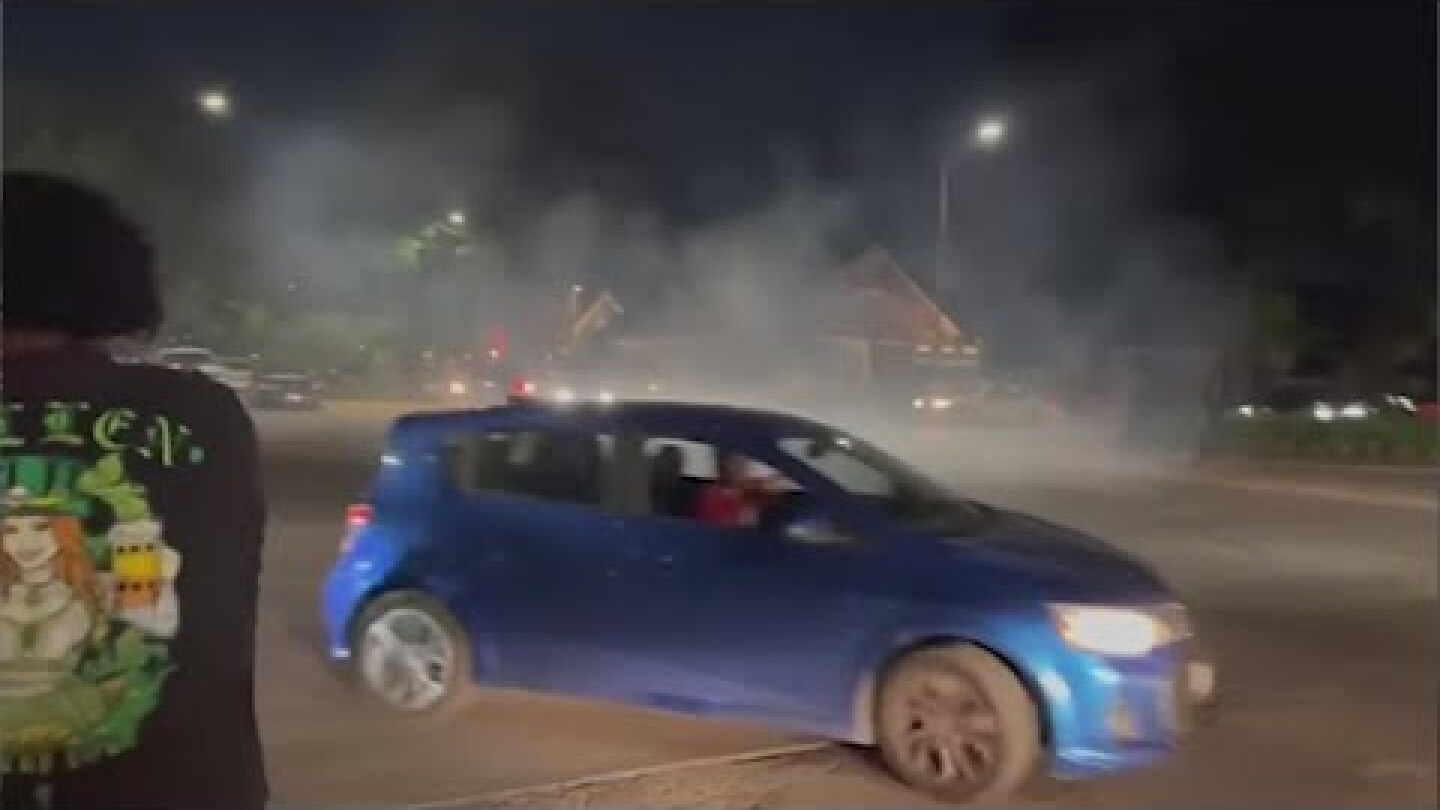 Video taken by concerned residents of the normally quiet neighborhood showed cars sliding in circles and burning out their tires in the intersection.