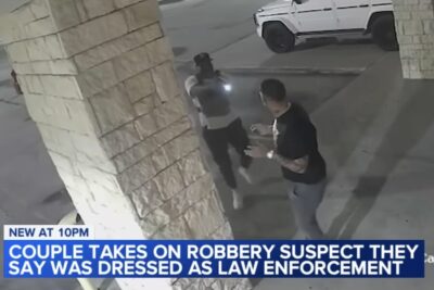 But little did he know Reyes wasn’t alone. Watching from inside, Reyes’ wife grabbed her own gun and rushed out to confront the fake cop. Chaos erupted.