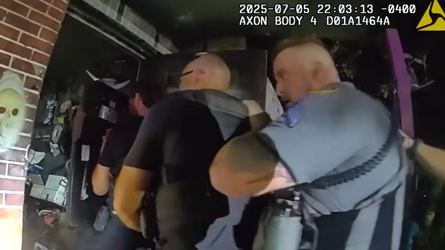Body-worn camera footage released by the sheriff’s office shows deputies repeatedly issuing commands with a megaphone for the suspect to exit the residence before entering the home.