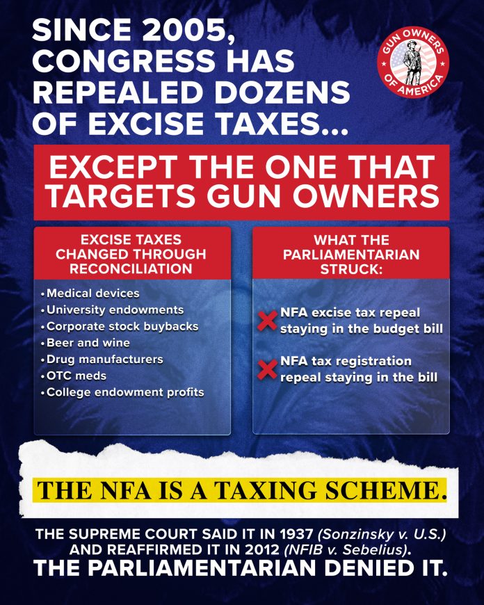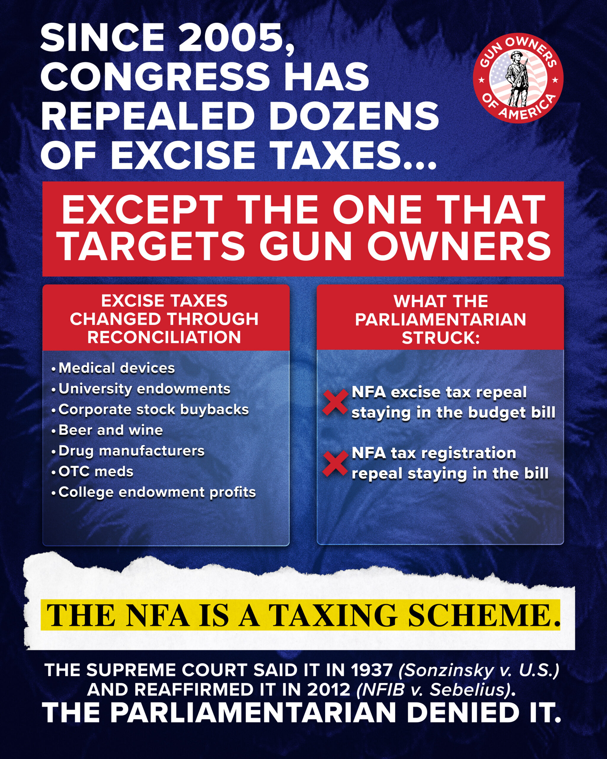 If you feel compelled, please consider making a grassroots donation – whether it’s $5 or $50 – to help GOA fight to fire anti-gun hack Elizabeth MacDonough and ensure the NFA tax removals are included in the One, Big, Beautiful Bill.