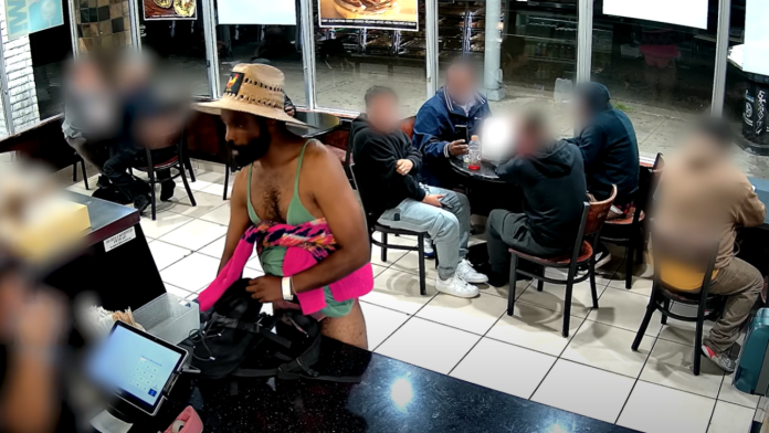LOS ANGELES — In May, a man wearing a woman’s sundress and a sweater tied around his torso tried to rob a donut shop. Now, newly released surveillance and body-worn camera footage reveals the dramatic struggle inside the shop and the suspect’s attempted getaway on foot.