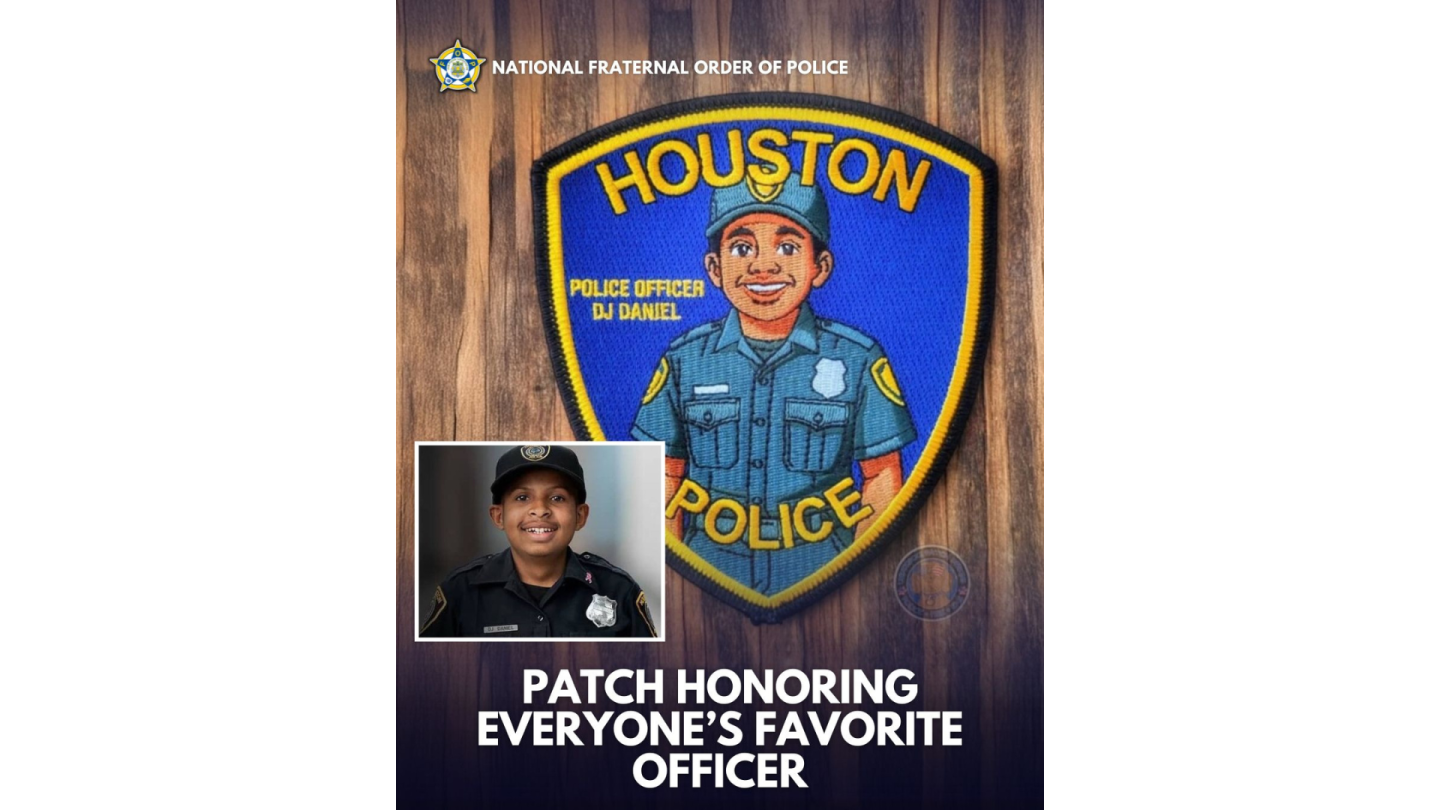 The patch features a cartoon image of DJ in uniform and is emblazoned with “Houston Police,” Daniel’s hometown department. The patch is also labeled “Police Officer DJ Daniel.”