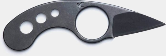 A demonstration of the finger ring feature highlights how a compact neck knife can stay secure in hand. The three-finger hold allows a strong, dependable grip during use.