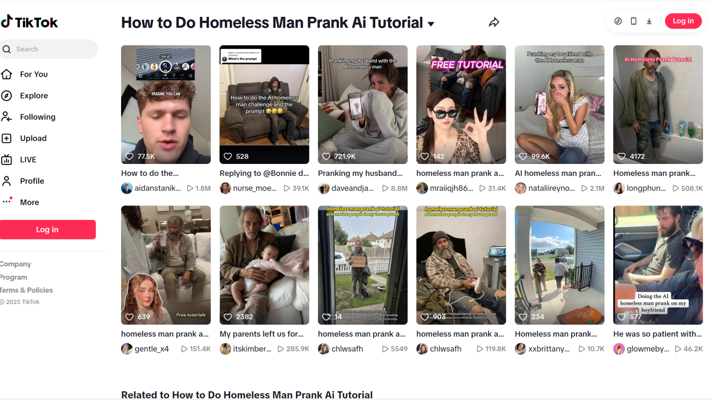 On TikTok, the search term “how to do homeless man AI prank” has generated more than 19.7 million posts, with users sharing reaction videos or tutorials that show how to create the images.