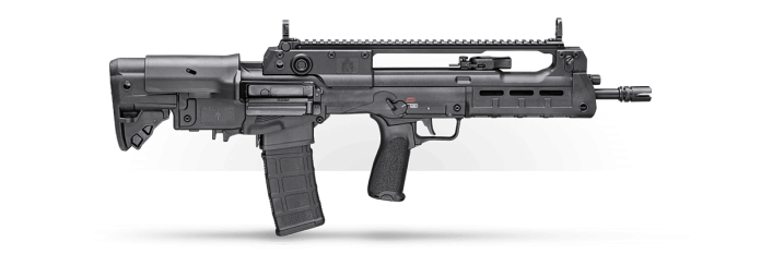 In addition to the Springfield SAINT series, Brownells is also offering the highly regarded Hellion rifle. The Hellion is a bullpup platform where the action and magazine are moved to the rear of the trigger creating a very compact firearm, ideal for working in confined spaces. The end result is an ultra-compact 5.56mm caliber firearm. Controls are ambidextrous with reversible case ejection.