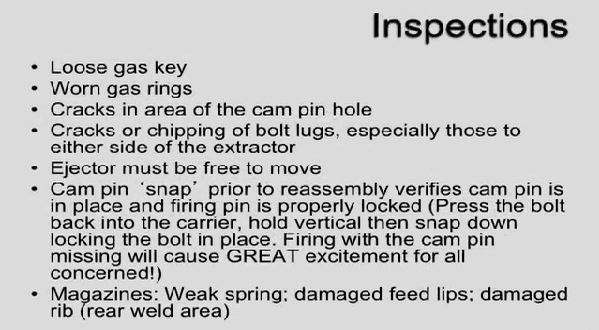 Last but not least, here are recommended inspections you should do every time you do a full field-strip and cleaning of your black rifle: