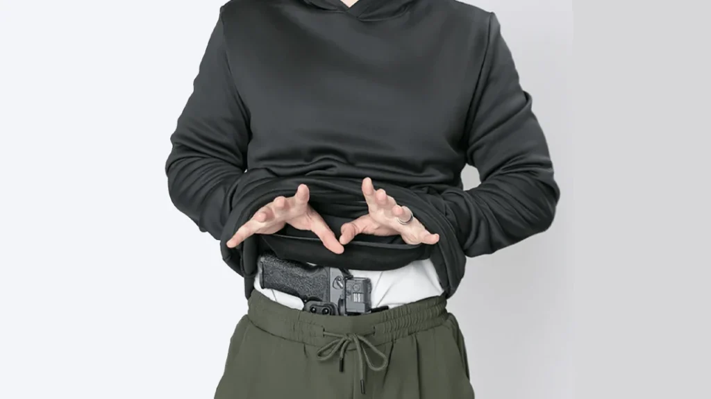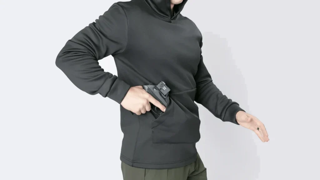 Pair this hoodie with a solid IWB rig and your favorite base layer, and you’ve got a cold-weather concealment stack that doesn’t slow you down. Use the pass-through zipper to stage your draw in anticipation of threat environments. Practice draws through the hand pocket with unloaded gear first. Especially if your firearm has extended magazines or optics.