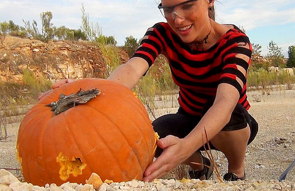 October is Halloween month, so we thought we’d share the seasonal spirit with our readers. In this video, our friend Kirsten Joy Weiss shows off her impressive trick-shot skills. To help celebrate the gouls/goblins holiday, Kirsten “carved” a pumpkin using her semi-auto Volquartsen .22 LR rifle.