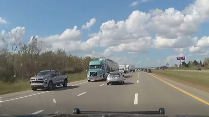 Livingston County Sheriff’s Office deputies joined the pursuit when the suspect, driving a small, silver car, fled the right way down the highway. As the deputy continued to pursue, the vehicle slowed down. The driver can be seen swerving across lanes and making hand gestures out the window.