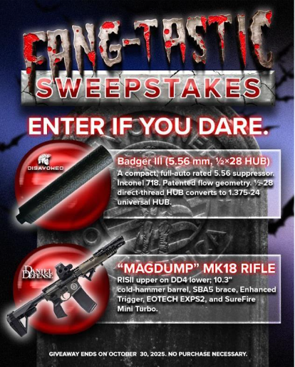 Gun Owners of America has teamed up with Disavowed Group and Daniel Defense for the Fang-Tastic Sweepstakes.