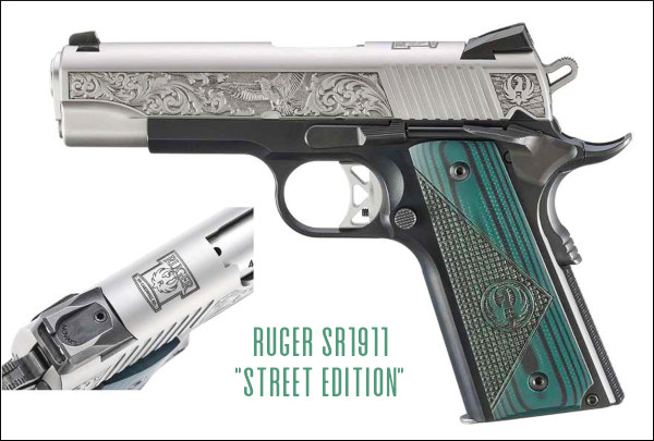 If you’re looking for a handsome new handgun, consider Ruger’s engraved 1911-type pistols, marketed as the SR1911 “Street Edition” series. This series of five engraved models of the SR1911 pistol celebrates Ruger’s manufacturing heritage.