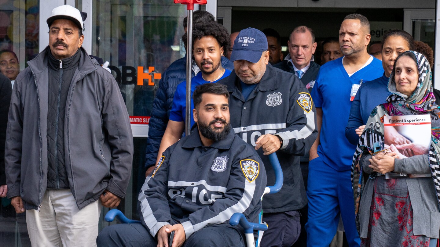 Waris was shot in the left side of his face. His birdshot pellet wound was minor and he was released from Brookdale University Hospital about noon, wheeled out in a wheelchair to cheers from fellow officers, with his family by his side.