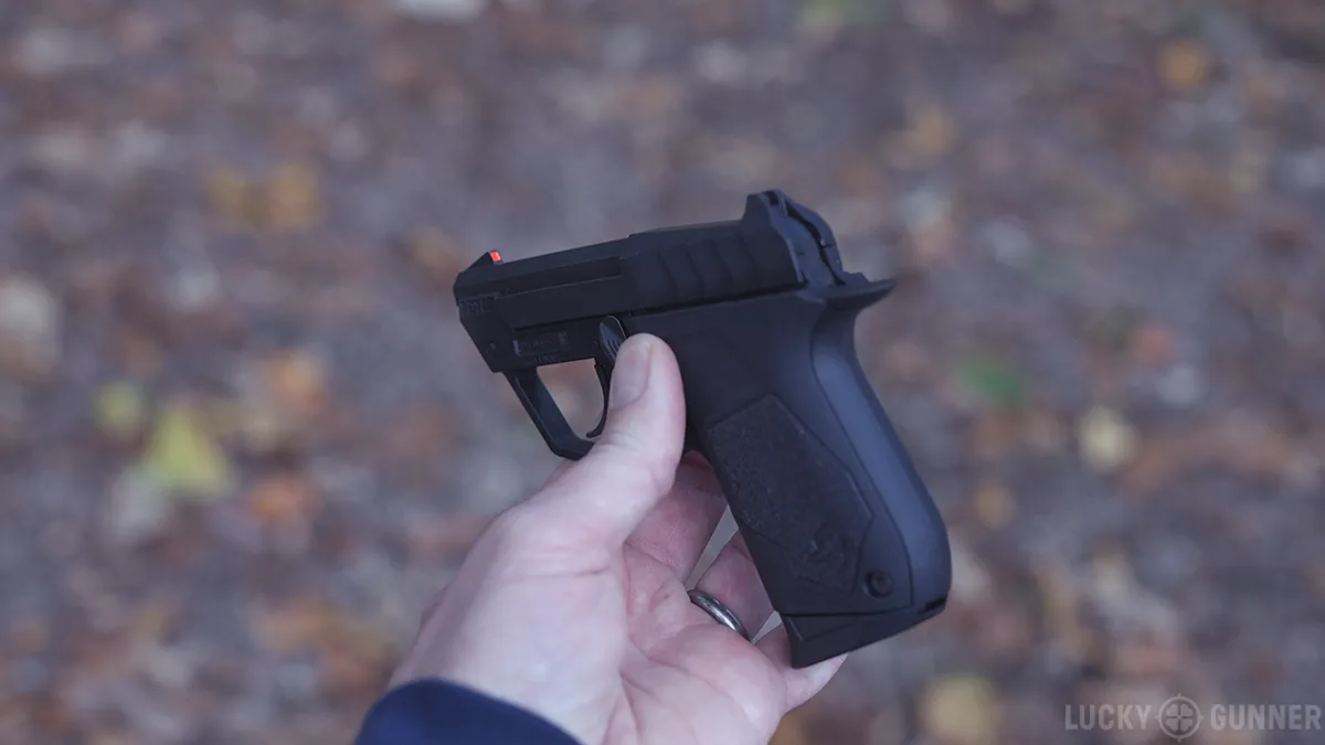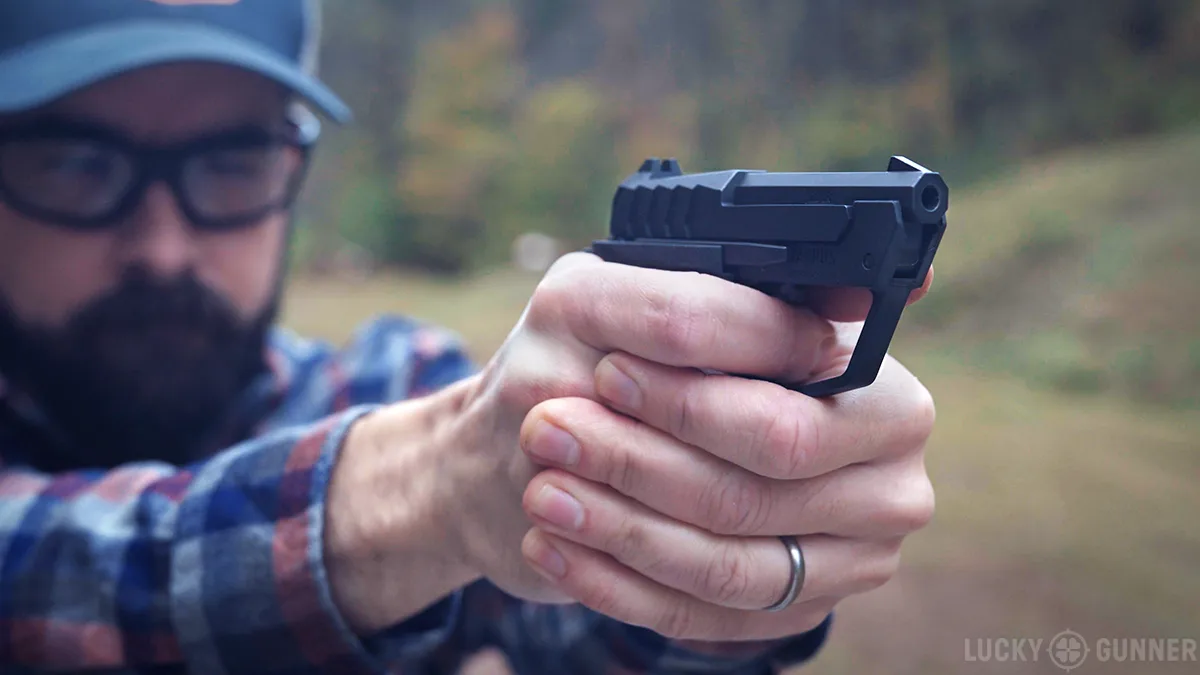 There’s a trade-off here. It’s not the thinnest or shortest pocket pistol, and that might make a difference, especially if you want to actually carry in a pocket. But the larger grip makes the trigger reach closer to ideal for most people, and it also tends to point more naturally. When I bring the gun to eye level, the sights are right there.