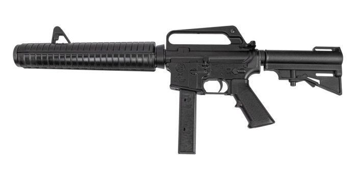 Before the M4 took over everything, agencies experimented with compact subguns based on the AR platform. Colt’s answer was a direct-blowback 9mm SMG. It looked like an AR but ran like a pistol-caliber carbine.
