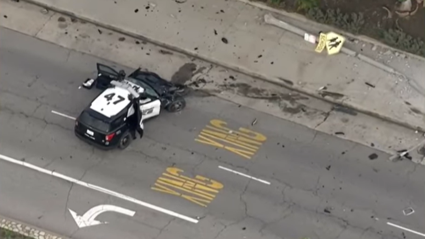 Alhambra Police Department Officer Alec Sanders, 28, was pursuing a suspect when the suspect vehicle crashed into his cruiser