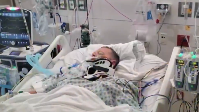 Fisher’s pelvis was shattered, and he suffered massive internal bleeding. He underwent multiple surgeries and received continuous blood transfusions for weeks at University Medical Center before doctors ultimately amputated his right leg.