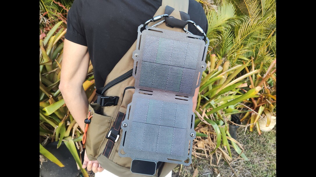 The most efficient use of the system would be for the power bank to charge while I continued my hike. I accomplished this with the included carabiners and fold-out solar panel. My pack had numerous attachment points at its top and bottom positions, making it a breeze to secure the solar cell.