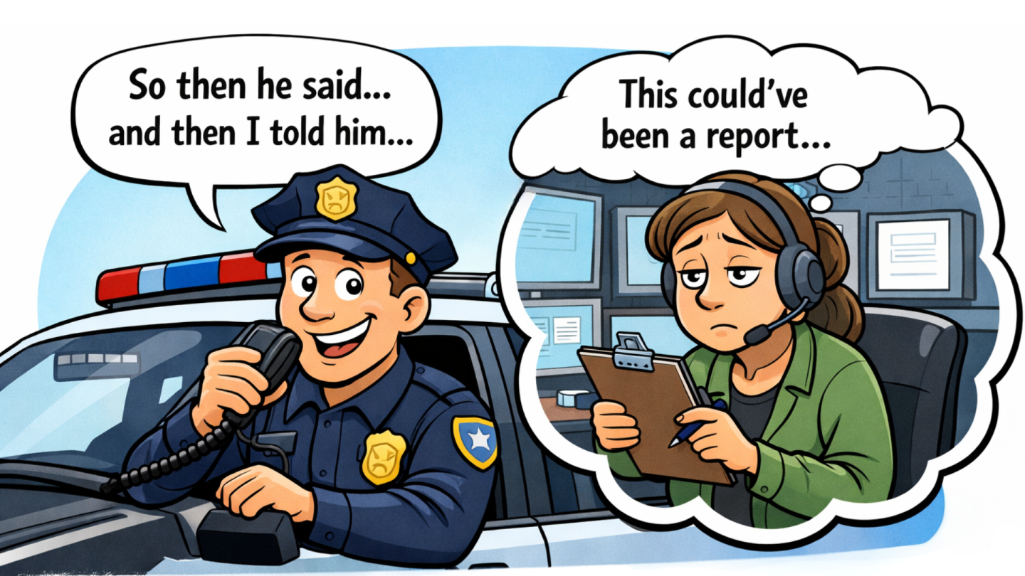 Any decent defense attorney will subpoena the radio traffic and dispatch notes. I’ve been the one pulling those recordings and CAD printouts for discovery. More than once, what an officer casually broadcasts while clearing a call didn’t perfectly match the final report due to the heat of the moment and without the benefit of time and information absorption. The microphone catches you in the moment; the report captures the well-considered truth. Your brain and mouth have attorney-client privilege, as well. Use it.