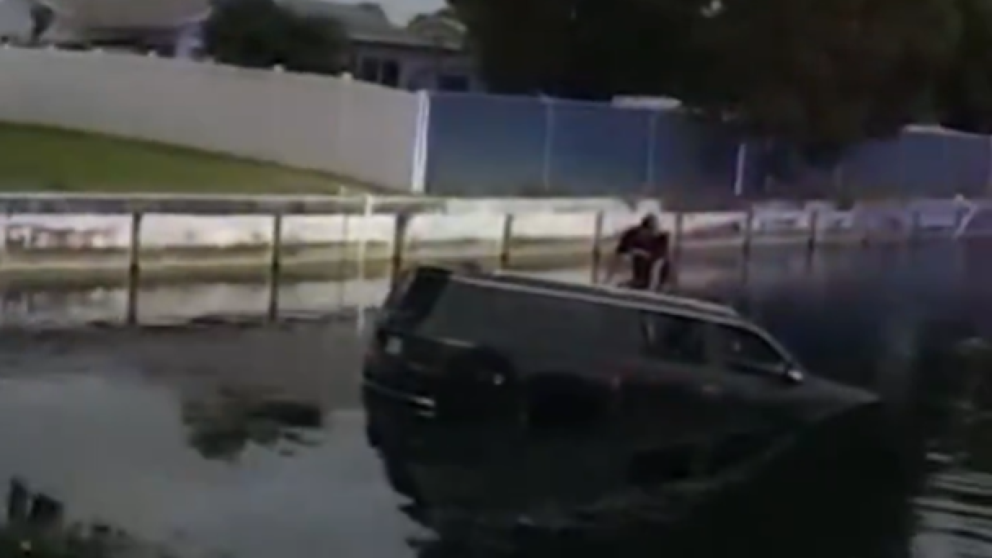 Footage shows Deputy Juliana Tenaglia arriving at the scene after a 911 caller reported that a vehicle had driven into a canal. She found the driver clinging to the vehicle, which was about halfway submerged.