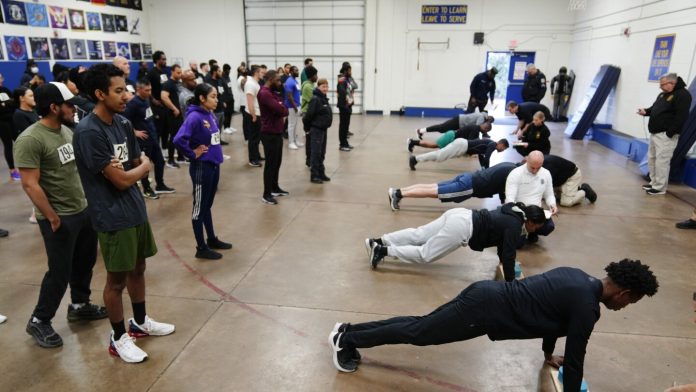 Recruits in the academy, while working diligently, still have their days scheduled for them, including physical training (PT). They invest significant effort to graduate in peak physical condition for the demands of duty.