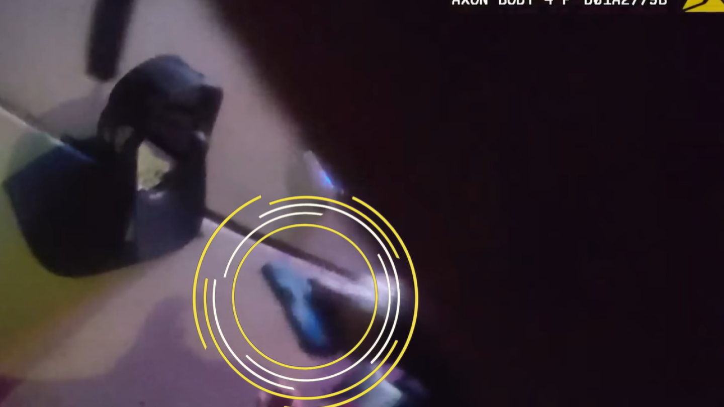 Garcia is then seen holding a handgun, police say. He fires one round toward the ground before an officer fires three shots, striking him once, the video’s narrator says.