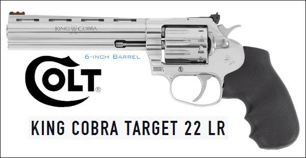 The King Cobra Target 22 LR is a great wheelgun from Colt Mfg. Co. (“Colt”). It is accurate, has a great trigger, and holds its value well. Colt states: “From competition to plinking and small game hunting, this baby Cobra does it all and packs 10-rounds of .22 LR in its cylinder”. The King Cobra Target 22 LR is available with five barrel options: 2″, 3″, 4.25″, 6″, and 8″ barrel lengths, all with 1:16″ RH rifling twist. The MSRP for all models is currently $1119.00, but you should be able to find one under $900.00. For example the 4.25″ and 6″ King Cobra Target are each under $885.00 at Guns.com. In addition, Colt is currently offering a $100 Rebate on Colt Revolvers, including the King Cobra Target 22 LR models.
