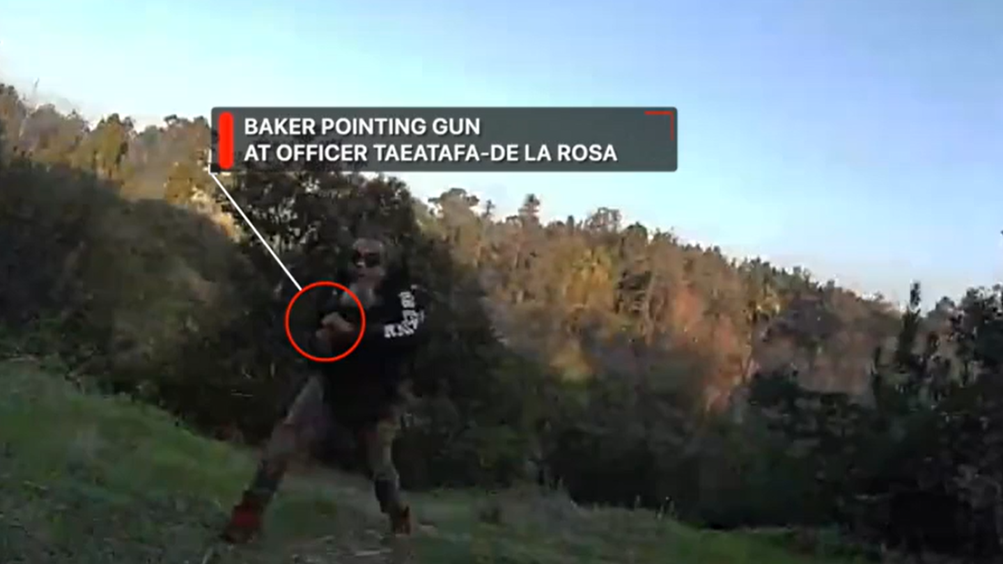 “Hey, stop!” Taeatafa-De La Rosa shouted after Baker pulled out a handgun and pointed it toward him, the video shows. Baker fired one shot at the officer, and Taeatafa-De La Rosa quickly pulled out his service weapon and returned fire, shooting multiple rounds, according to the video. Baker then fell to the ground.