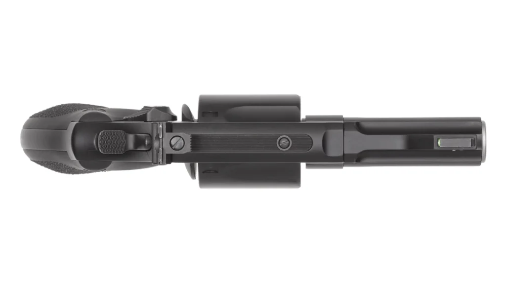 For carry, Smith & Wesson went the extra mile to eliminate sharp edges across the gun, including the rear sight and cylinder release. The cylinder face is chamfered to ease reholstering, and each chamber is beveled to speed up reloads. The stainless-steel cylinder is finished with a black PVD coating, giving the revolver a clean, matte, non-reflective look.