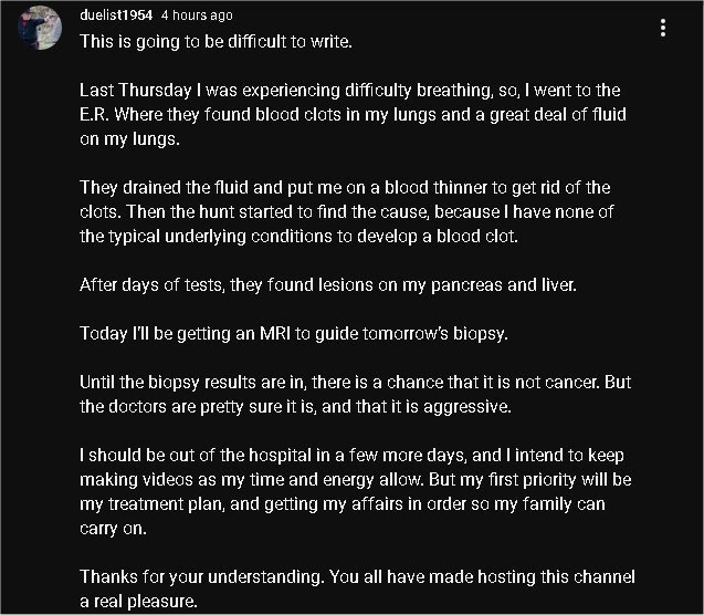 Mike posted to YouTube about a health issue he is currently experiencing.