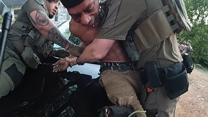 Culliver grabs the dog’s leg as he is being bitten and several officers strike him in the head and upper body before he lets go.