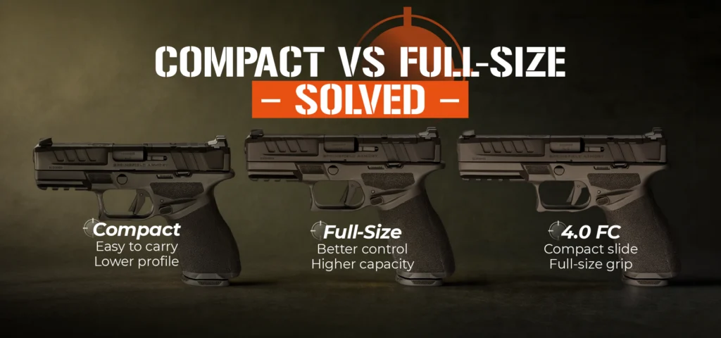 If a compact always felt short in the grip but a full-size is too much to conceal, the 4.0 FC lands exactly in the middle. Full grip control, shorter slide profile, all-day carry comfort. Best-in-class solution for this specific problem.