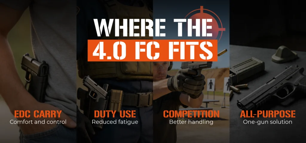 If you want a single pistol that works equally well at the range, for carry, and for home defense without cutting corners anywhere, the 4.0 FC is one of the strongest arguments in that conversation right now.