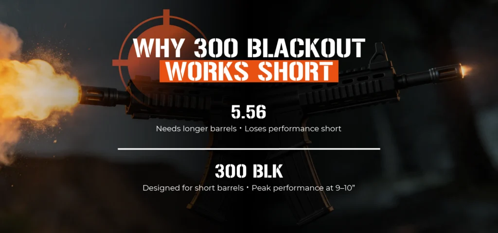 If you own or are planning to acquire a suppressor, the 300 BLK was purpose-designed for it. The 9.5-inch barrel optimizes both subsonic and supersonic performance. Running subsonic loads through a can on this platform is a genuinely different — and very capable — experience.